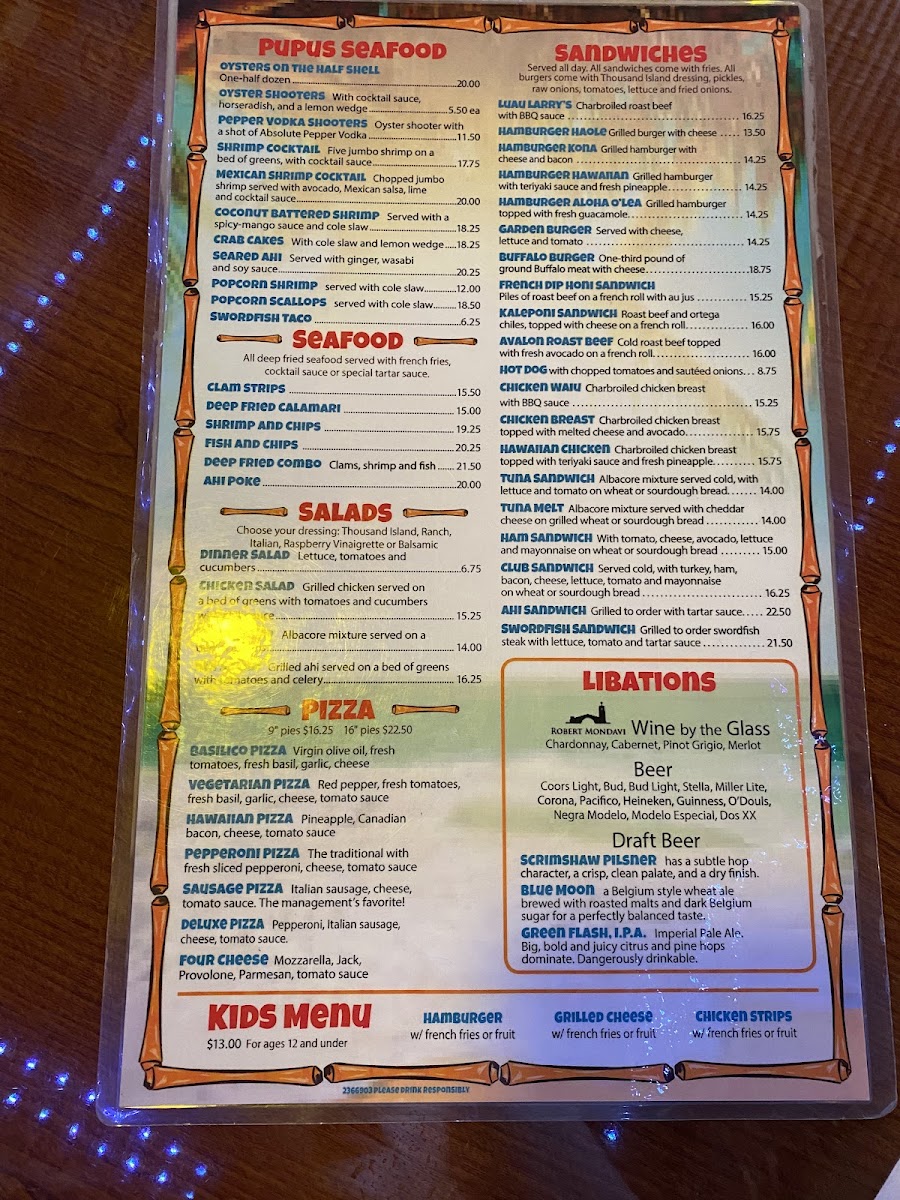 Welcome to Luau Larry's, a vibrant culinary gem nestled in the heart of Avalon, California. Located at 509 Crescent Ave, this tiki-inspired eatery captures the essence of island living with its delightful decor and relaxed atmosphere. Just a leisurely stroll away from the ocean, it offers a perfect spot for both locals and visitors alike to unwind and indulge their taste buds.