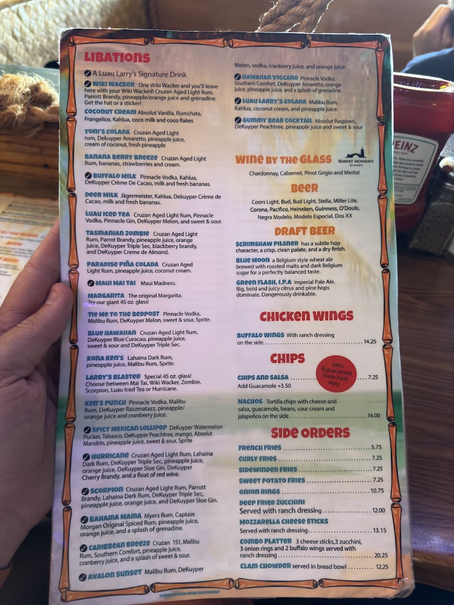 And don't overlook their refreshing cocktails, like the Banana Buffalo milkshake, which perfectly embodies the fun and laid-back spirit of the place. Whether you're stopping by for a quick bite or a leisurely meal, Luau Larry's offers generous portions and an enjoyable dining experience that you won't want to miss!